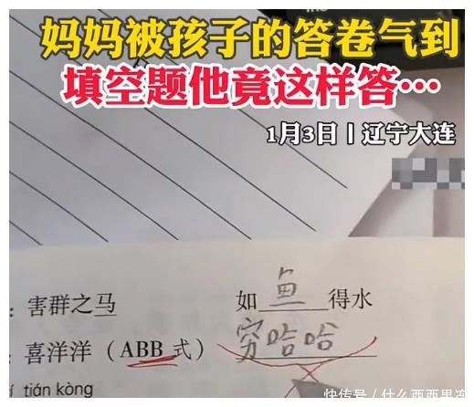 欧博a股博彩上市公司(www.duxlv.com) 近日,辽宁大连一姆妈发了一个孩子试卷的视频,视频中露出,孩子把语文卷子中ABB的句式(例子乐陶陶)的谜底,写成了“穷哈哈、你叉叉”。 无奈!只可阐述文娱对孩子的影响力有多大,被这首神曲给洗脑了。