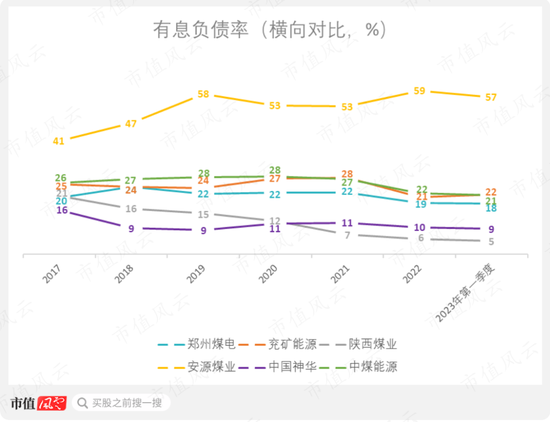 有息欠债率方面稍好,在同业中属中游。2023年一季度有息欠债率为18%。