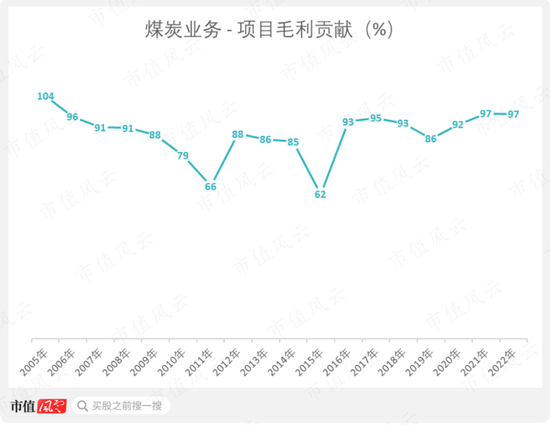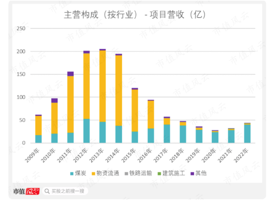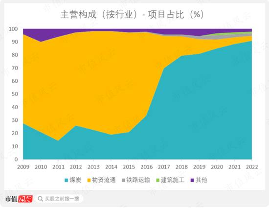 只看数据不论实质,公司似乎在去粗取精,专注煤炭业务。煤炭业务从2011年的14%的营收占比一说念爬升至2022年的91%。