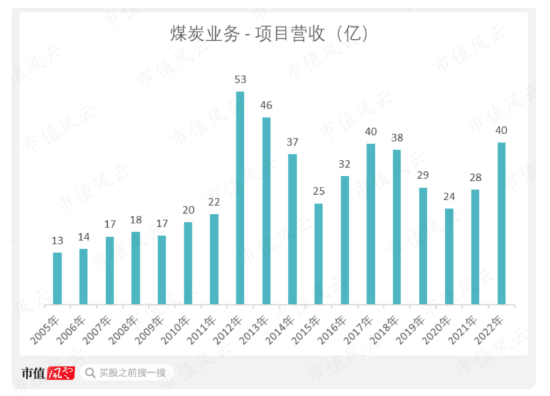 2022年44亿营收,是从2013年的206亿一说念下滑而来。而2011-12年的渺小逆转,原因可能天下也了解:近两年商场煤价上升。