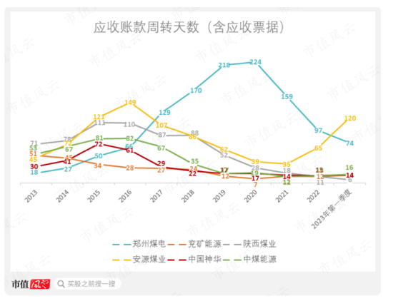 本来煤炭业务就难,资金到账难上加难。应收账款盘活天数曾一说念飙升至2020年的224天。如今2023年一季度亦然同业中居高的74天。