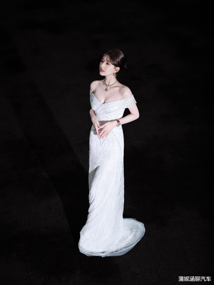 而这寂静白色亮片长裙,细节处可谓精细入微。扎着澄清的发型,红唇好意思艳,静态也有柔好意思感,就像画中好意思东说念主一般,十分有画面氛围感。